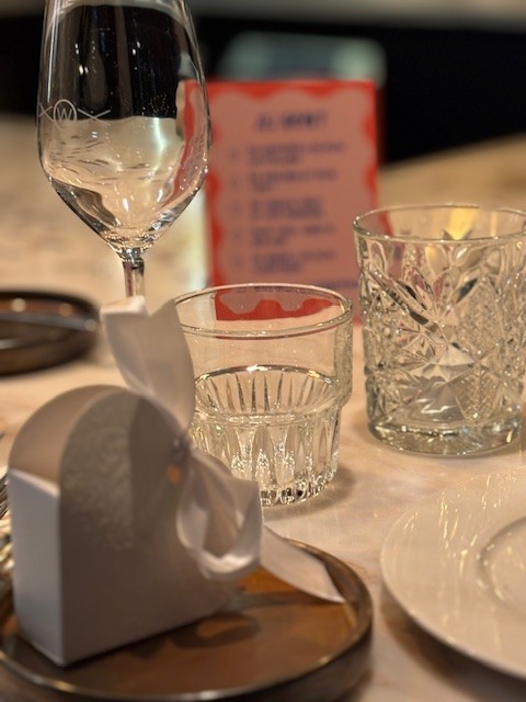 ingedekte tafel met wijnglas en waterglas en wit hart, tijdens Valentijn bij Welgelegen in Groenlo
